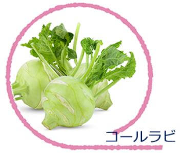 コールラビは食感がカブやダイコンの様で、味はブロッコリーやキャベツの様だと言われています。食べるのは地上部で丸く太った茎。キャベツの芯に近い存在ですが、葉でつくる養分を茎いっぱい貯めて肥大するので甘みがあり、シャキッとした食感です。生のままでも食べられ、浅漬けや漬物にも向いています。薄くスライスしたり、細切りにしてサラダにしても美味しいですし、炒め物や煮物にも使える野菜です。
