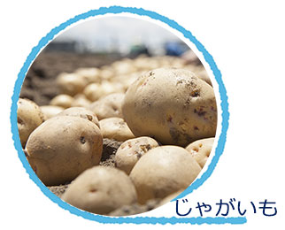 じゃがいもには、ビタミンC、B1、B6、ナイアシンなどのビタミン類を豊富に含んでおり、主成分がデンプンであることから栄養価も高いです。特にビタミンCはたくさん含まれており、その量はホウレンソウやミカンと同じ位です。ジャガイモの中のビタミンCは、でんぷんに守られて加熱しても壊れにくく、風邪の予防や疲労の回復、肌荒れなどに効果があります。じゃがいもの「芽」の部分にはソラニンという毒があり、芽以外にも、日光が当たって皮が緑化してしまっている部分にもソラニンが含まれていて、じゃがいもを食べて吐き気や下痢、おう吐、腹痛、頭痛、めまいなどの症状が出たときは、急いでお医者さんにみてもらいましょう。